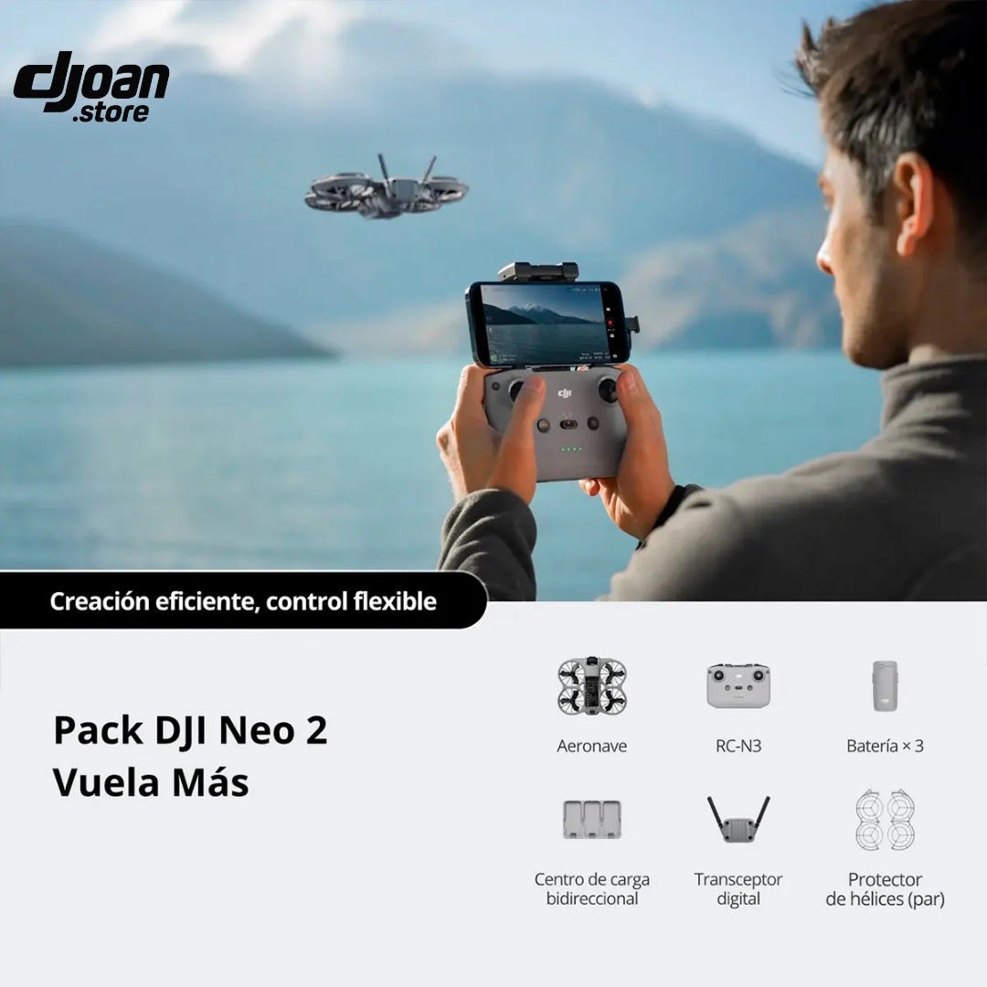 El Neo 2 puede seguirte sin necesidad de control remoto, pero cuando quieras ir más lejos y más alto, puedes conectarlo al ecosistema completo de DJI.
